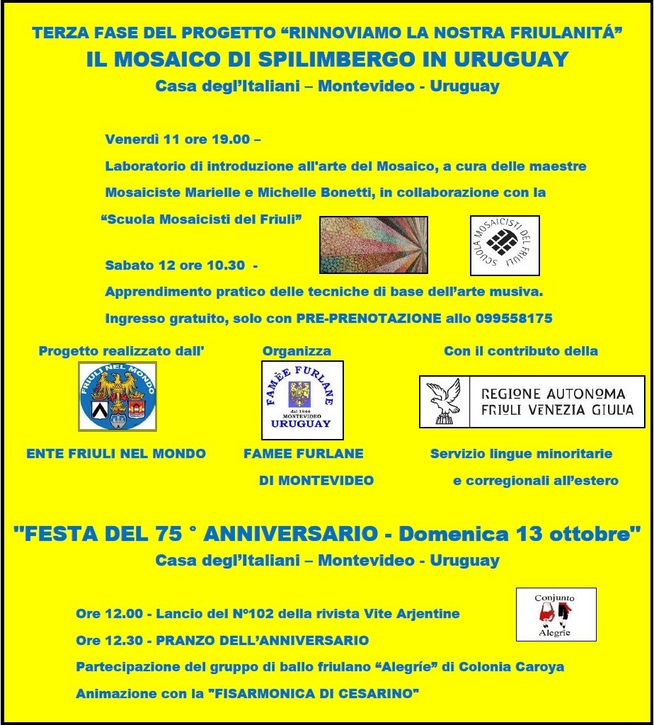 Terza fase del progetto RINNOVIAMO LA NOSTRA FRIULANITA' (Montevideo - Uruguay, 11-12-13 ottobre 2019)