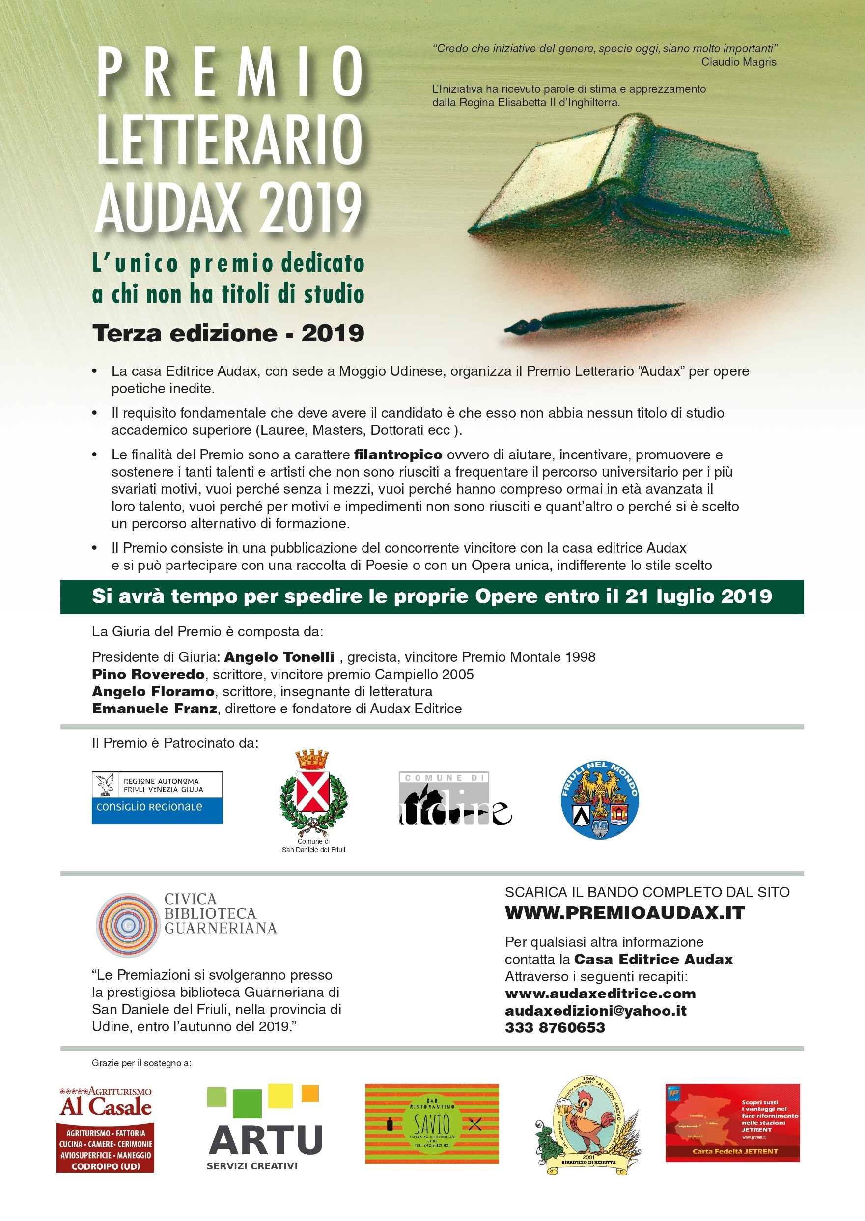 Premio lettarario Audax 2019. L'unico premio dedicato a chi non ha titoli di studio (scadenza 21 luglio 2019)