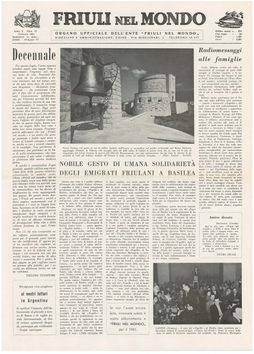 Nobile gesto di umana solidarietà degli emigrati friulani a Basiliea