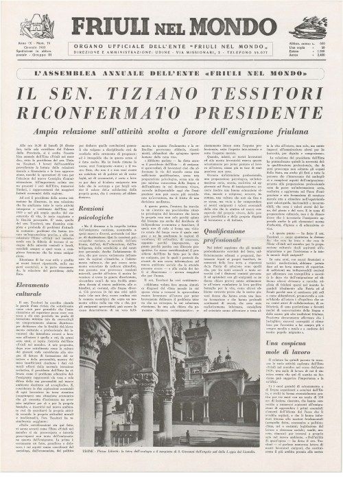 Il sen. Tiziano Tessitori riconfermato presidente : ampia relazione sull'attività svolta a favore dell'emigrazione friulana
