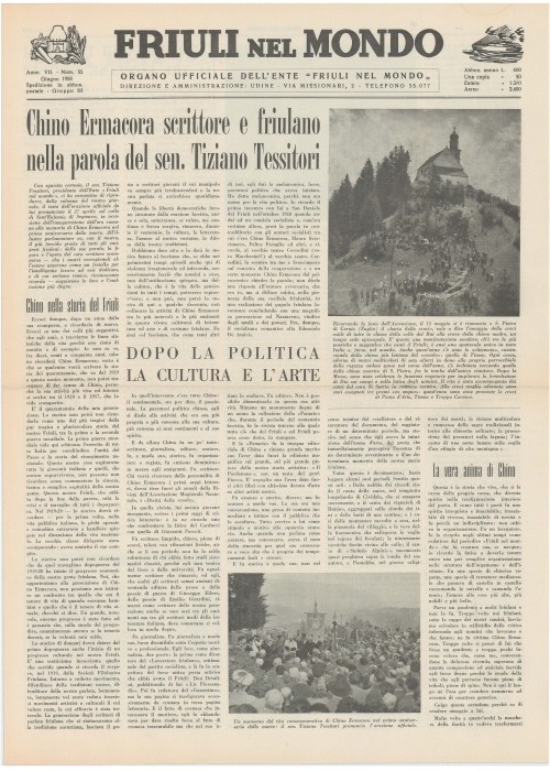 Chino Ermacora scrittore e friulano nella parola del sen. Tiziano Tessitori