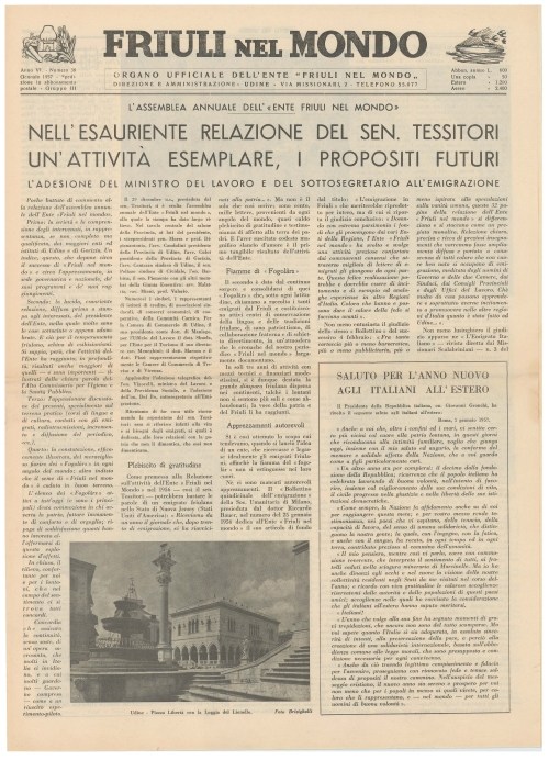 Soggetti Friuli nel mondo : Redazione - Lettere [agli] Emigrati friulani - 1957