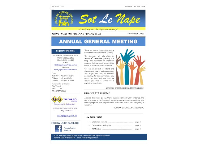 Newsletter - Fogolâr Furlan di Cape Town novembre 2018
