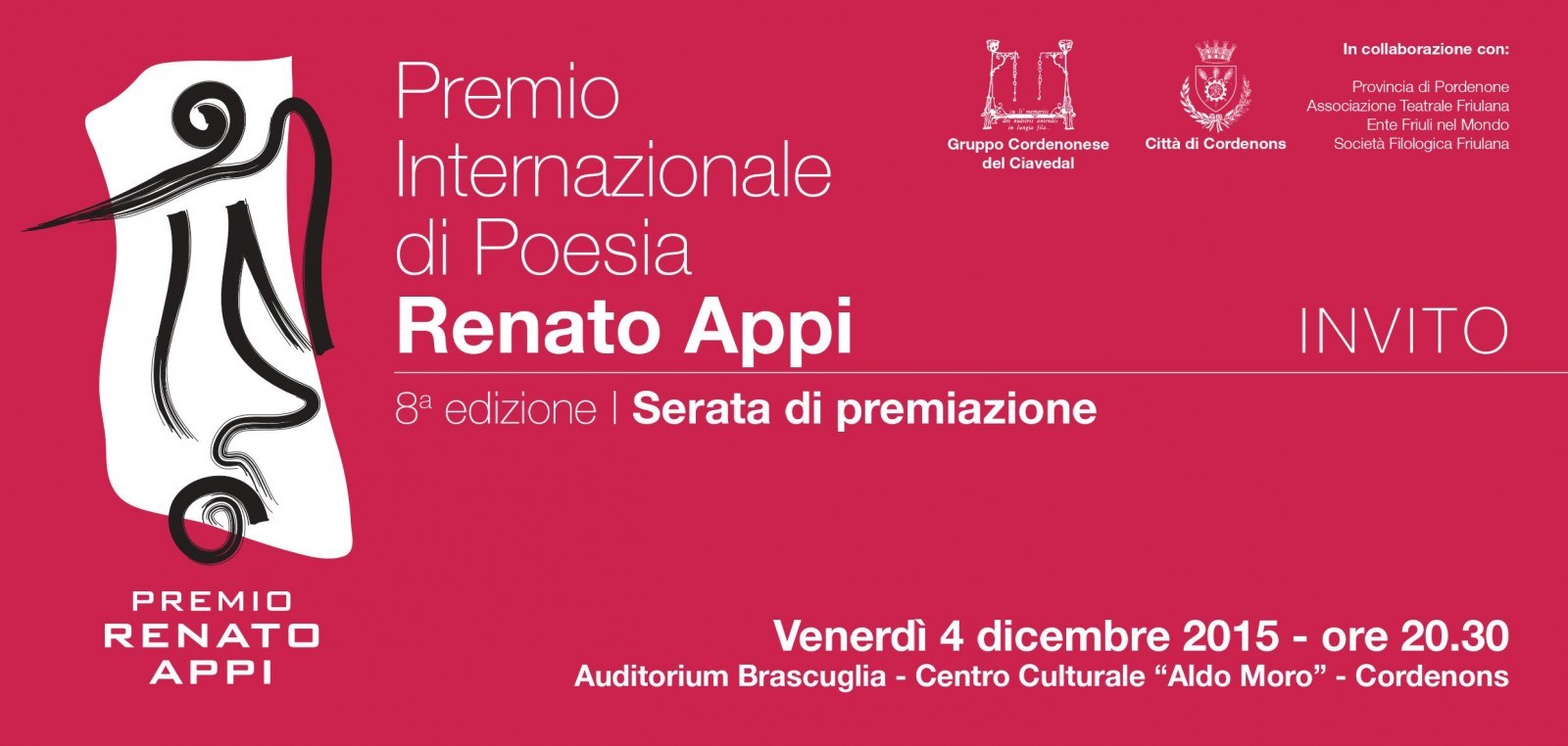 Cordenons, venerdì 4 dicembre - ore 20.30 - Premio internazionale di poesia Renato Appi