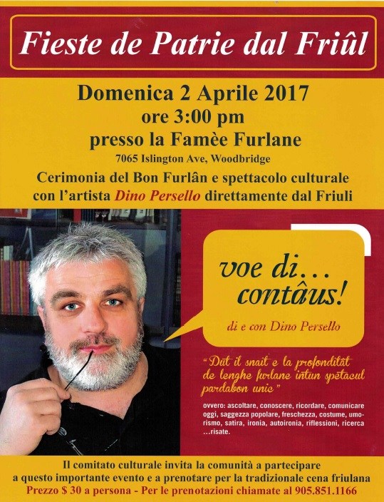 Fieste de Patrie dal Friûl (Famee Furlane Toronto - 2 aprile, h 15:00)