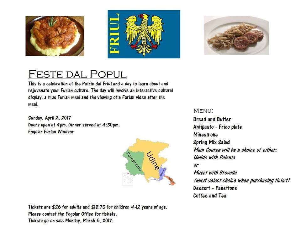 Feste dal Popul (Fogolâr Furlan Windsor - 2 aprile, h 16.00)