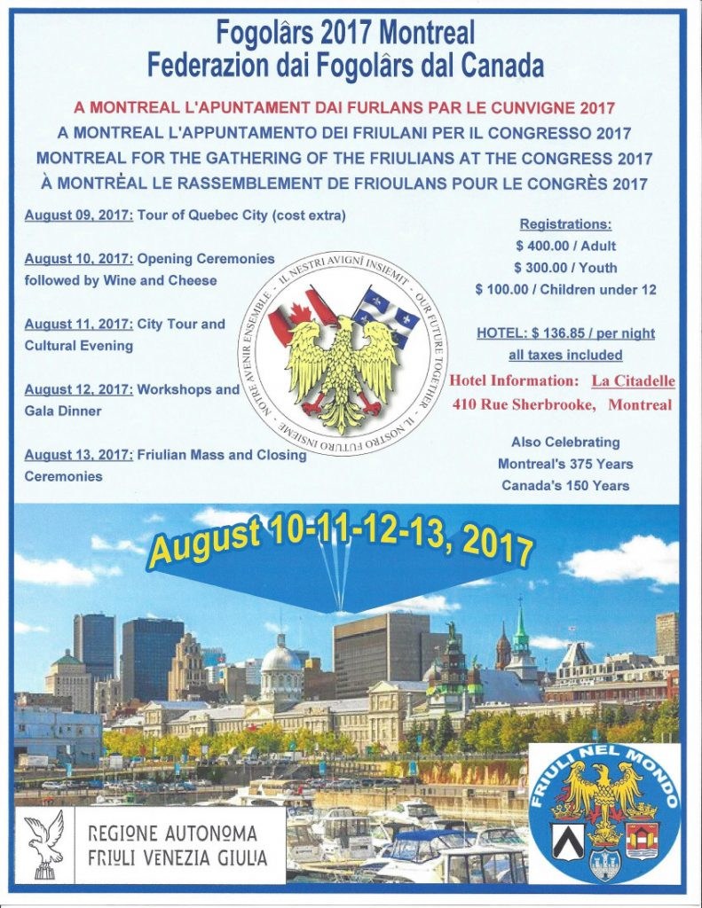 Congresso dei Fogolârs Furlans del Canada (Montreal, 10 - 13 agosto 2017)