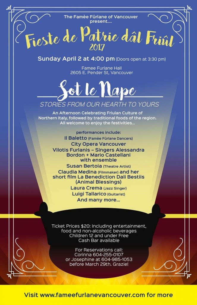Fieste de Patrie dal Friûl (Famee Furlane Vancouver - 2 aprile, h 16:00)