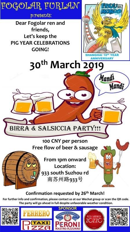Birra&Salsiccia party (Fogolâr Furlan di Shanghai, sabato 30 marzo 2019)
