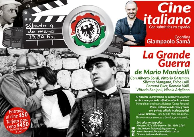 Cine Italiano, proiezione del film "La Grande Guerra" (Sociedad Friulana de Buenos Aires, sabato 4 maggio ore 19.30 - Navarro 3974 Villa Devoto, B. A., Argentina)
