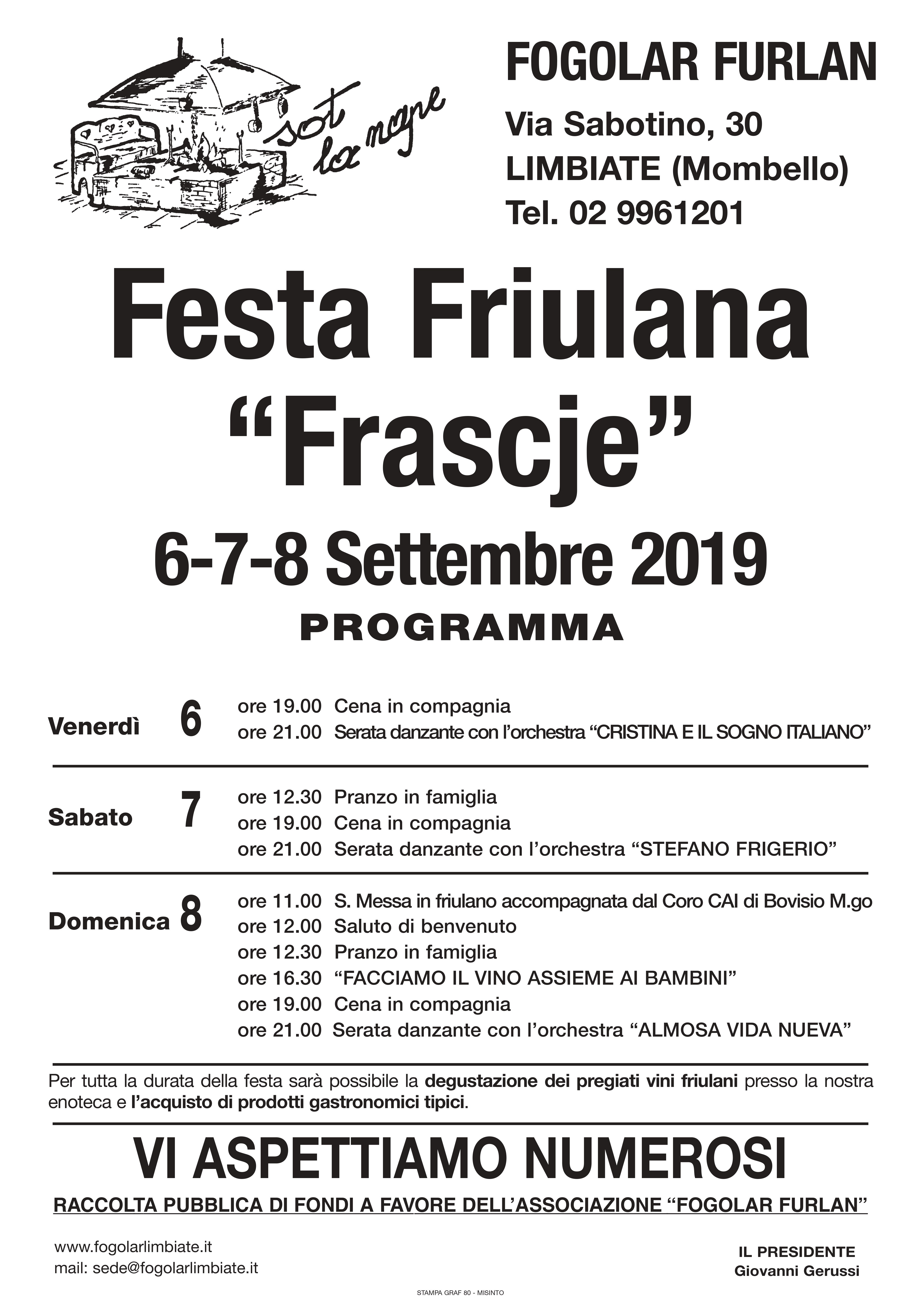 Festa Friulana "Frascje" (Fogolâr Furlan di Limbiate, 6-7-8 settembre 2019)