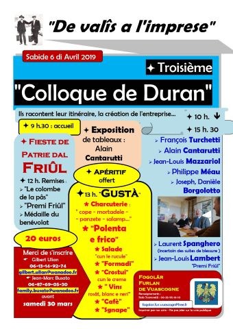 Le Convigne di Duran (Fogolâr Furlan de Vuascogne, sabato 6 aprile 2019, ore 10.00 - Salle des fêtes, Duran)